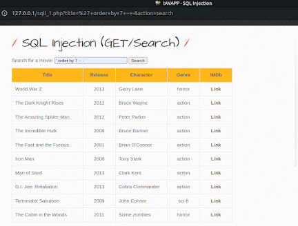If you have learned the SQL injection, this blog will be easy for you. I choose SQL injection (GET/Search) from the bWAPP option selection.